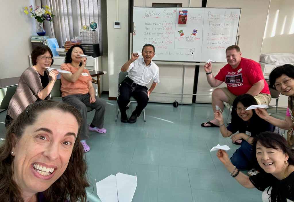 Each Sunday afternoon, we are hosting a “Casual Party” and hoping that both English readers and Tachikawa church members will come for fun, games, and fellowship. We have a small American snack prepared and spend time chatting and getting to know each other as well as playing some “getting-to-know-you” games. This week we each anonymously answered four questions about ourselves, folded the answers into a paper airplane, then sent the page flying across the room. Everyone picked up the airplane that landed closest to them and unfolded it, and then we went around the room reading out the answers and trying to guess who had thrown that piece of paper. Everyone had such a good time! We are hopeful that more readers and church members can join us in the coming weeks.