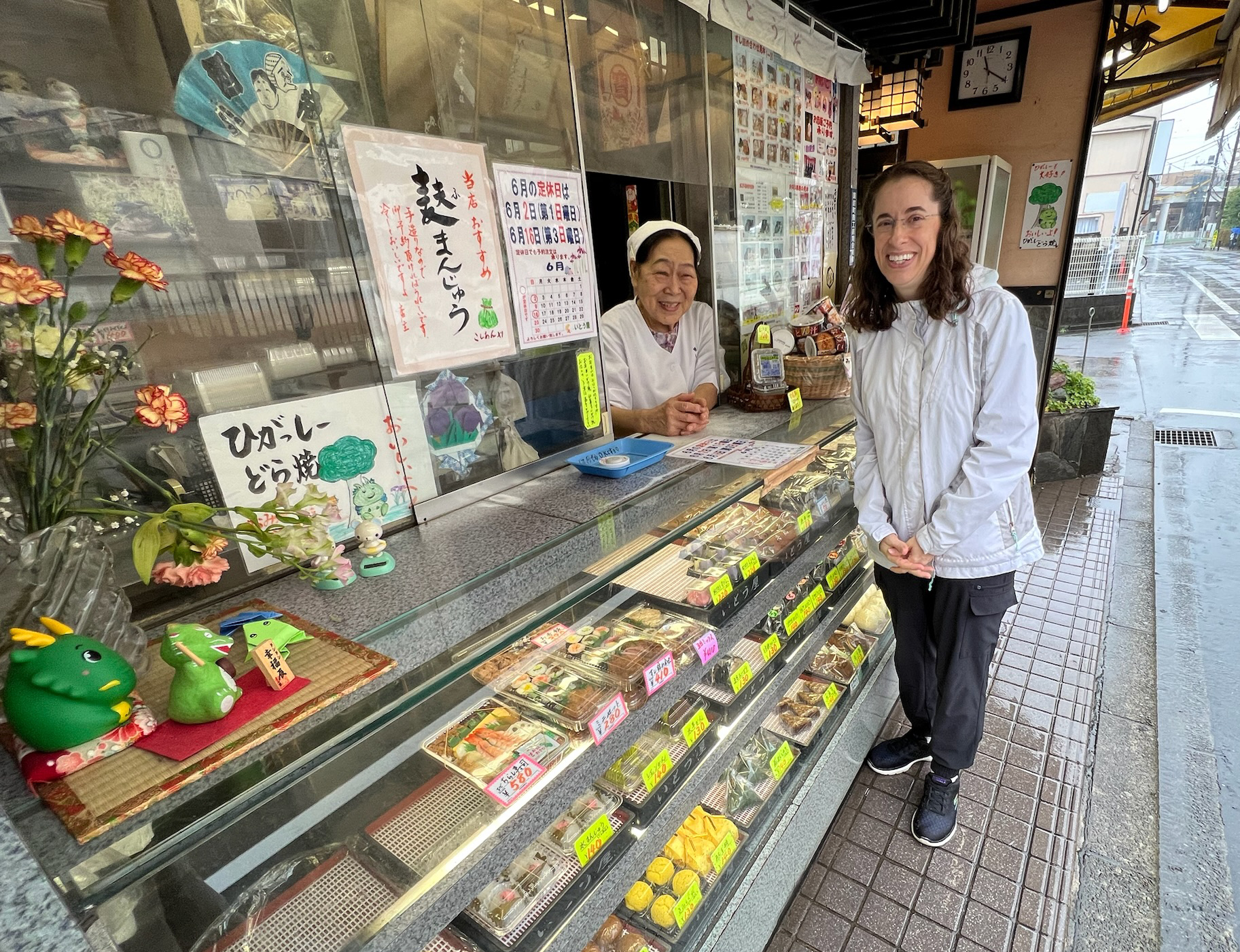 Although the main focus during our time here is working with our English conversation and family music friends as well as encouraging the Tachikawa church, we have had a couple of chances to get out and about. Many of you know that Emily spent a large part of her childhood in Japan. Part of that time, they lived in Higashimurayama, another Tokyo suburb near Tachikawa. Often, they would walk past this “wagashiya” (Japanese snack shop) and sometimes get a little something on the way to or from the train station. When we came as a family in 2017, we were able to find it again and the sweet family that runs it was still there. So, this week Noriko Fukushima drove us by to check it out and we stopped by for a little visit. Such a sweet lady! We bought a few munchies, but then she bundled up several more free of charge. Her mother, who would probably have recognized us better, was doing well at age 88 but no longer comes in the shop everyday. It was fun getting to see the place again and feel the warm encouraging smile that this woman gives out daily.