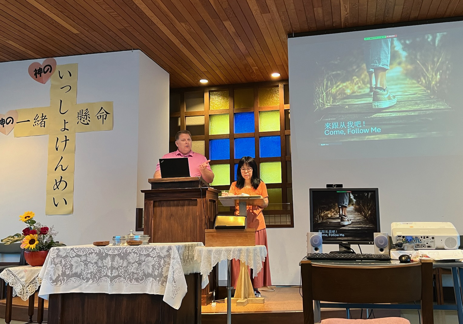 After preaching in the Japanese worship service last week, Nao asked if I would be able to preach the same sermon again this week for the 3pm Chinese worship service. There is a small group of believers who use the auditorium once a month for a worship service in their native language. They also join in with some of the other Japanese church activities, such as potluck meals. I was glad to be able to connect and share the message with them. A dear sister named Sue Ling translated for me, and we enjoyed worshiping God in yet another language. Several of the members had recently returned to China for a couple of months, so the attendance was small, but it was still a sweet time focused on a common Savior.