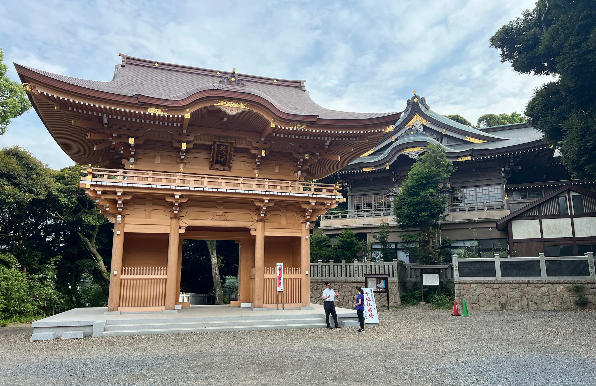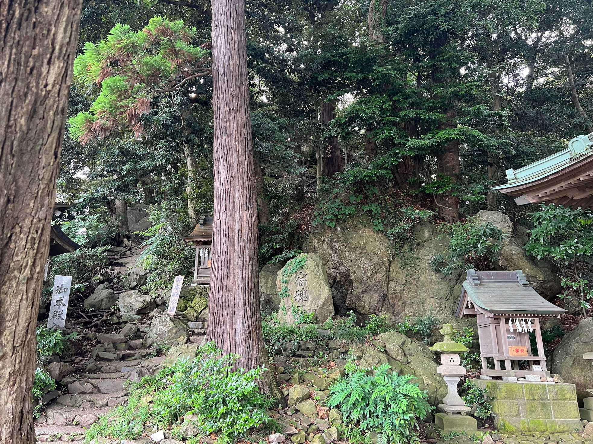 Before long, Yoshiya passed us off to Yukikazu Obata, who is one of the professors at ICU. He is a long-time church member and past preacher, and the son of Shiro Obata, minister for the Haruna congregation (and Ochanomizu for many years before that). Yukikazu brought one of his elementary education students with him, and we chatted about what it takes to be a teacher in the US vs Japan, and some of the cultural influences that make it different both ways. Afterwards, we toured the nearby Omika Shrine. This is a Shinto shrine that some people claim has been around for over 2,600 years. The current buildings aren’t that old, of course, but if you look closely at the second picture there is a stone stairway that leads up to a large boulder at the very top of the hill. Natural formations which are particularly conspicuous are venerated in Shinto with some people believing that a deity must inhabit such a unique structure. Many of the buildings there were indeed old, but they had also just erected a new gate structure (the golden-brown one) in the last several years to add to the importance of the site.