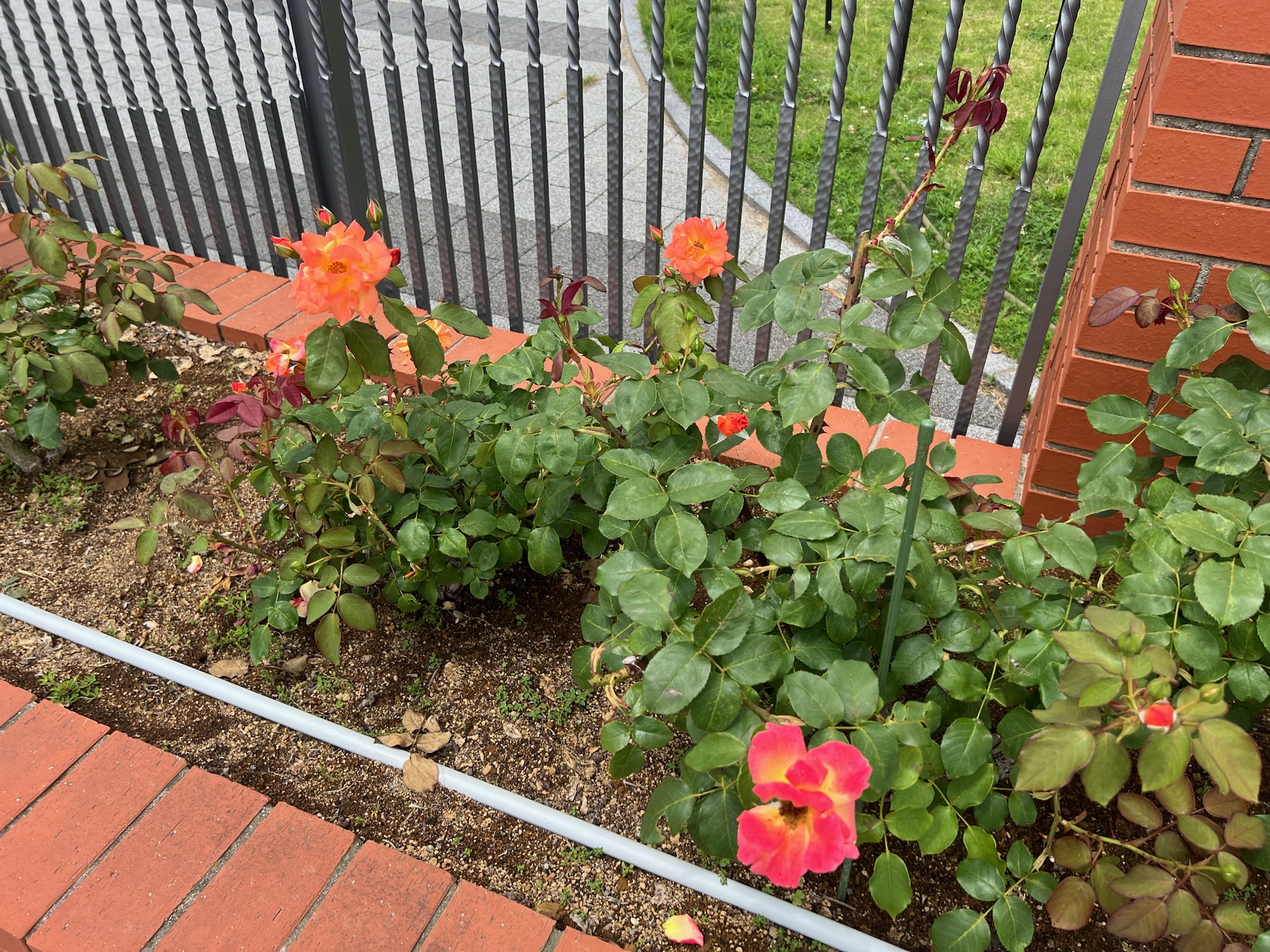 And for our parting shot this week, here are some images of the “Anne Frank Roses” at the front gates to the Ibaraki Christian University campus. This species of rose was developed in Belgium in the 1950’s, and was eventually named after Anne Frank in hopes that its blooms would inspire peace around the world. It is an interesting variety because its flowers change color over time. The bud starts out dark red, then it is a vivid orange when in full bloom. Over time, as it is exposed to sunlight, the petals shift toward a pale salmon pink before returning to a shade of red. There are blooms in each stage at any given time, so it makes for a neat variety of colors and textures. Also, it is a rose that blooms year-round, making it a great reminder of the need for peace in the world. For Yoshiya Noguchi, it is also a reminder of the peace between God and man offered by faith in Jesus. Amen!