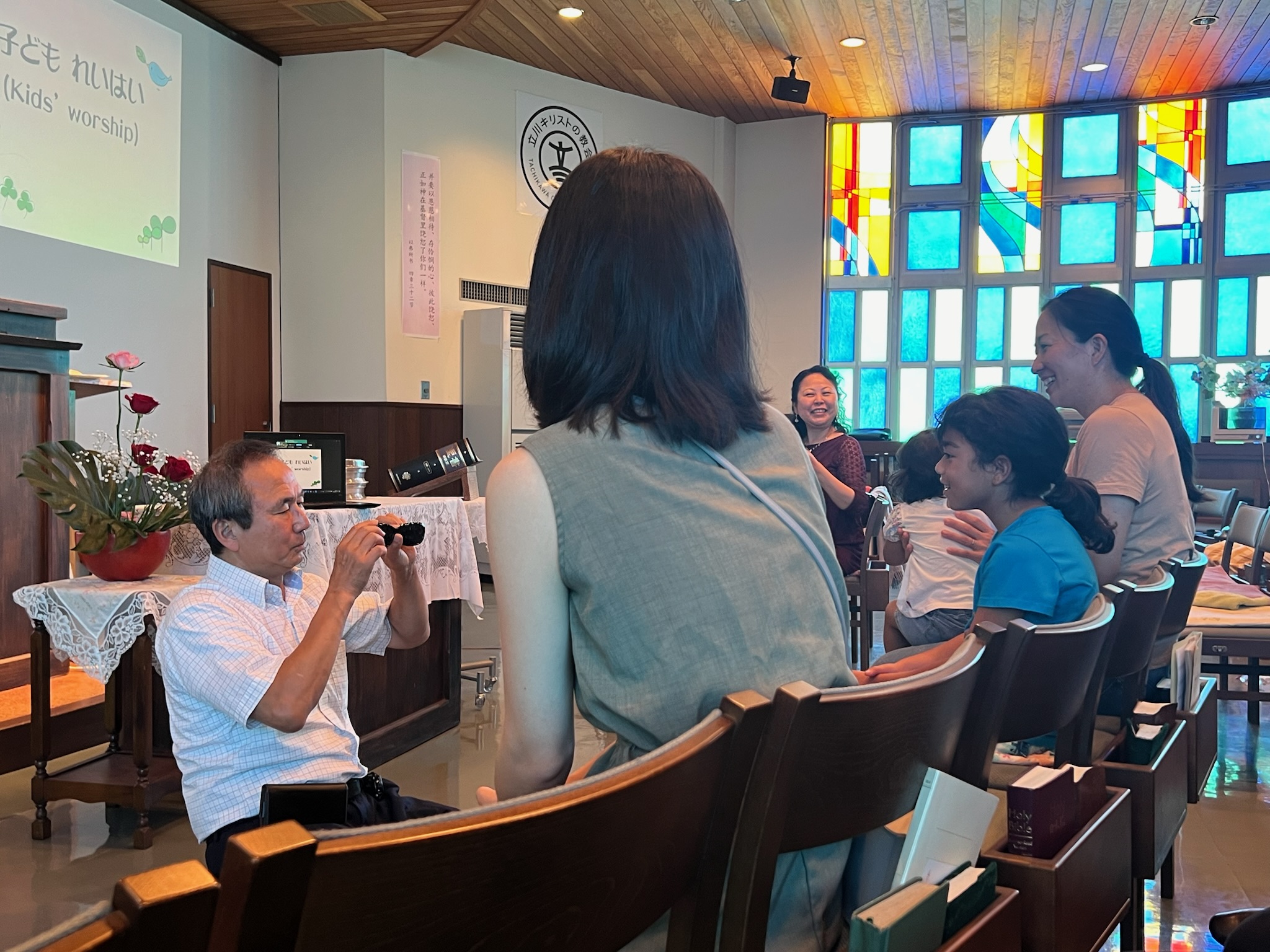 God continues to bless us here in Tachikawa. This week was a bit more routine since we have completed all of our planned excursions to other people and places. I filled in last-minute for Suzuki-san and gave the Lord’s Supper comments since he was unable to make it for worship. Nao had a great deal of fun with the Children’s Worship as he demonstrated how the ways that we see things (represented by various types of glasses) can change how we act. Ultimately, by shining Jesus’ light, we are able to find the correct path in life. It was really cute seeing the kids react to each pair when he pulled them out of his bag. We were also fortunate to visit with both of the Fukushima’s daughters since Naomi joined us for worship along with regular member Mitsuko and her children.