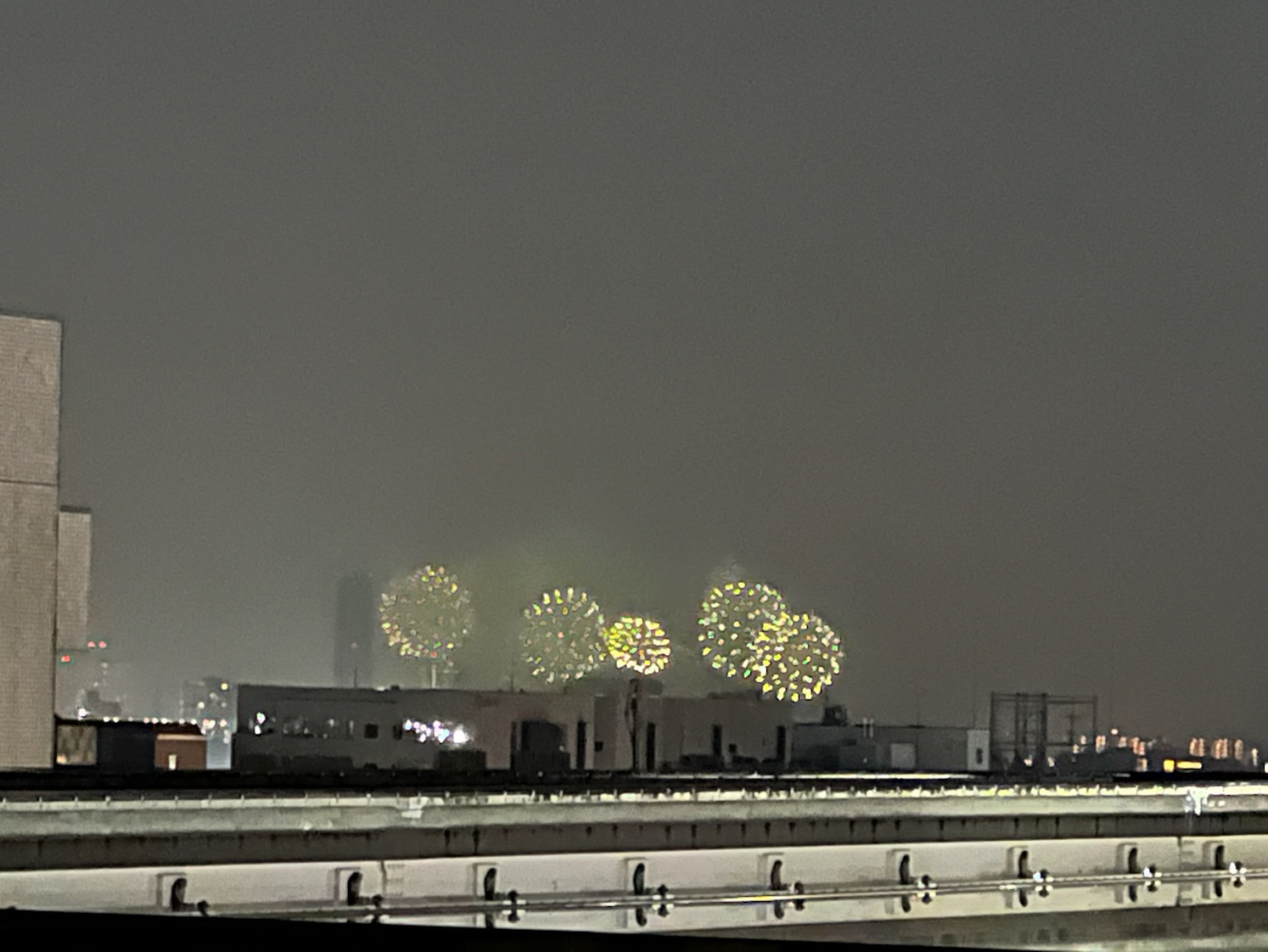 And speaking of the view from the roof… I celebrated a birthday this week and not long after dinner we heard a familiar booming sound from the open window. In the states, July 3rd isn’t much cause for fireworks, but it turns out that nearby Fuchu, Japan, was having a celebration. So we headed to the roof and enjoyed the breeze while watching the show. There were a number of designs that I have never seen before, and it was a very nice surprise!
